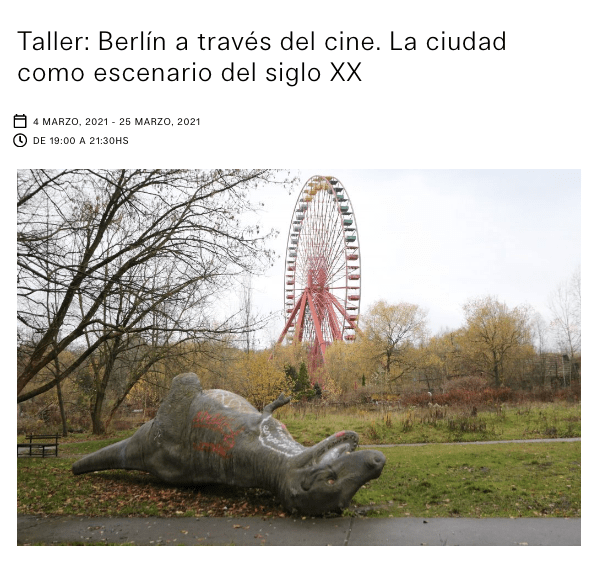 De todo esto hablaremos en nuestro taller durante el mes de marzo. A través de algunos textos y sobre, todo, a través de mucho cine, nos aproximaremos a una ciudad y sus heridas, algunas cicatrizadas y otras recientemente abiertas. Conoceremos Berlín desde el punto de vista de la imagen cinematográfica y entenderemos por qué hoy la ciudad tiene tantísimas ganas de vivir.